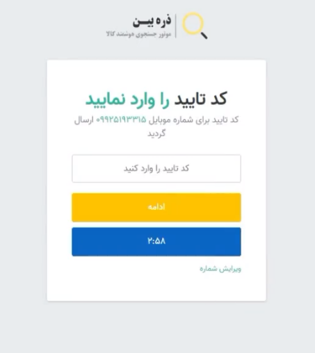 ✅ کد تایید پیامکی ذره بین را درج نمائید؛ تا احراز هویت شوید.