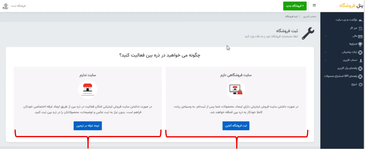 سایت ندارم: در صورتی که وب سایت فروشگاهی خود را هنوز راه اندازی نکرده اید و وب سایتی ندارید این گزینه را انتخاب کنید.