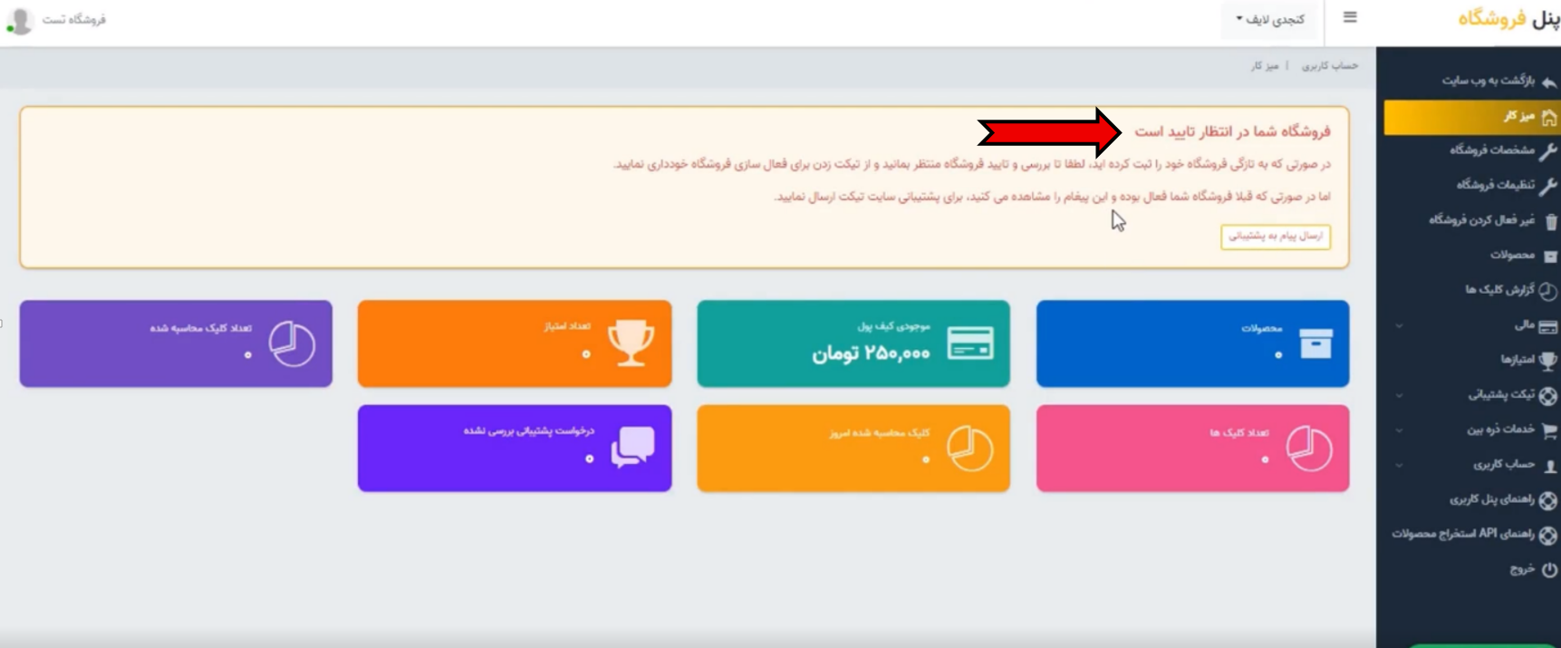 3. پس از ثبت نام فروشگاه شما ظرف مدت حداقل یک ساعت و حداکثر ۴۸ ساعت توسط کارشناسان بررسی و محصولاتتان به پنل اضافه خواهد شد. این موضوع از طریق پیامک به شما اطلاع رسانی خواهد شد.