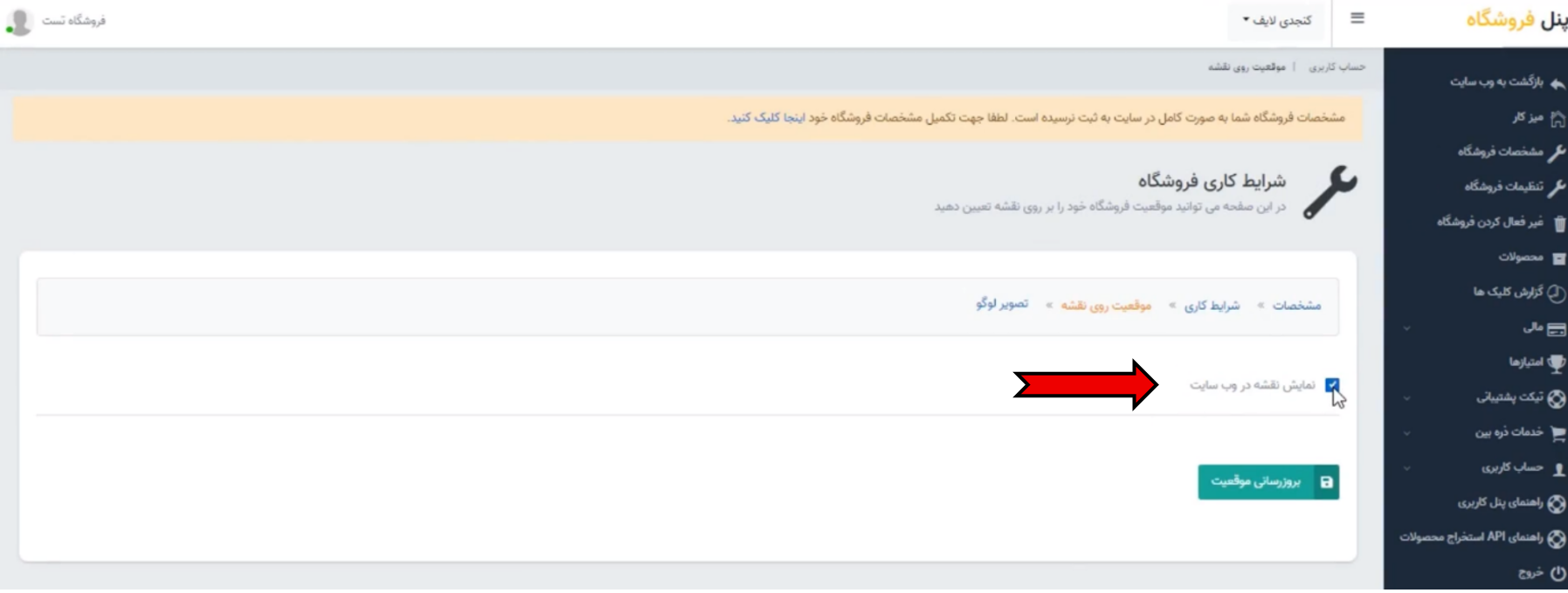 در مرحله ی بعد نقشه فروشگاه خود را وارد نمایید. همانند تصویر چک باکس را انتخاب کرده تا به صفحه ی مورد نظر هدایت شوید.