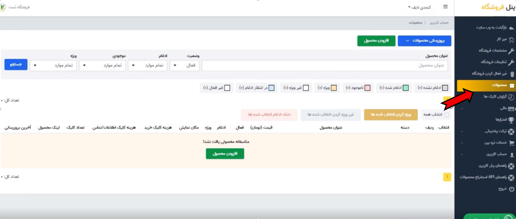 ویرایش فروشگاه شما به پایان رسید. می توانید طبق تصویر از قسمت مدیریت محصولات، محصولات فروشگاه خود را اضافه و یا حذف نمایید.