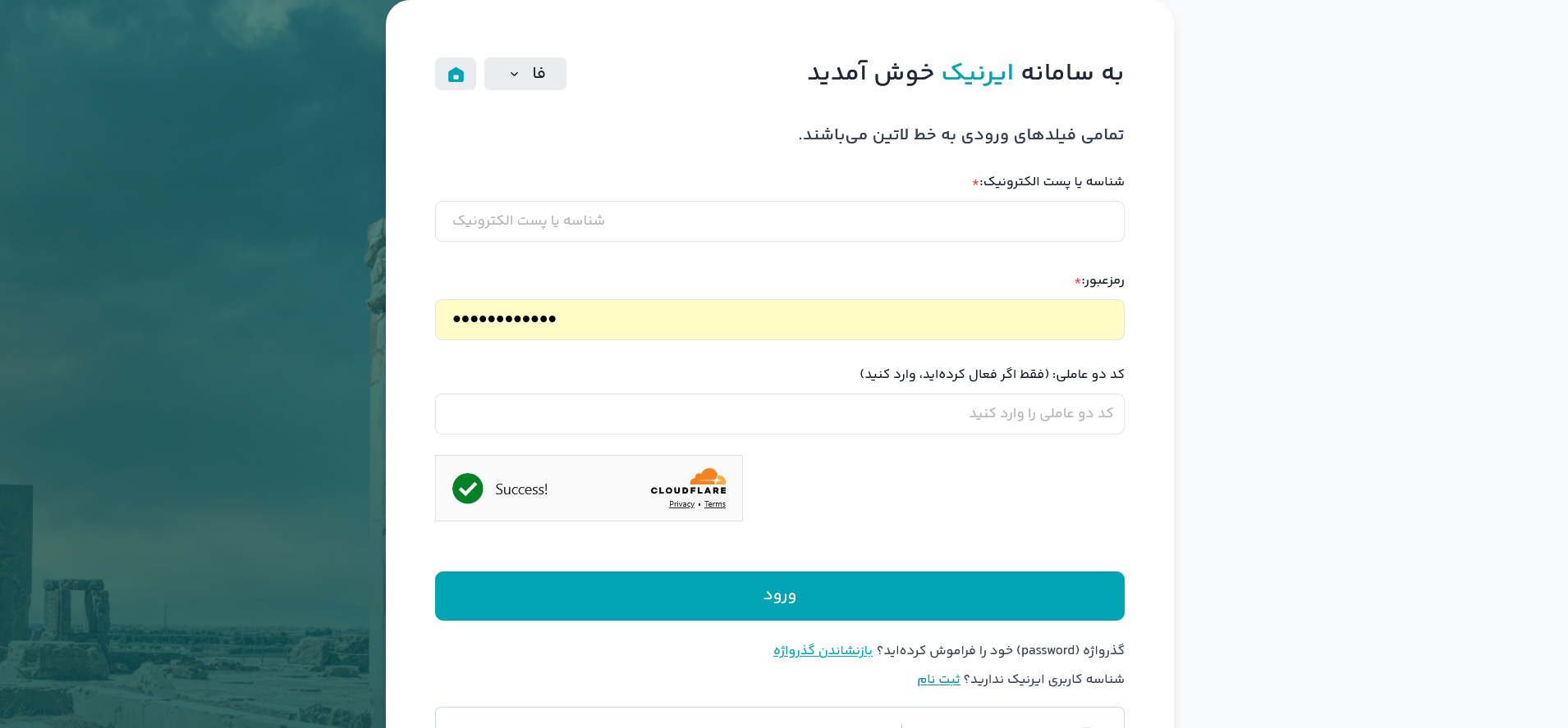 برای شروع، وارد سایت nic.ir شوید. در صفحه اصلی در نوار ابزار بالای صفحه در صورتی که قبلأ حساب کاربری داشته اید بر روی دکمه ورود کلیک کنید تا با درج شناسه یا پست الکترونیک و رمز عبور خود مانند تصویر زیر به پنل کاربری تان هدایت شوید.