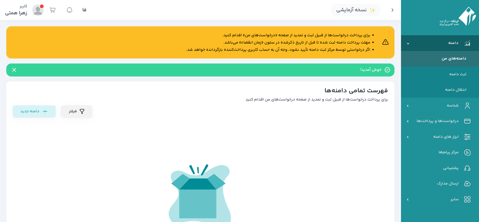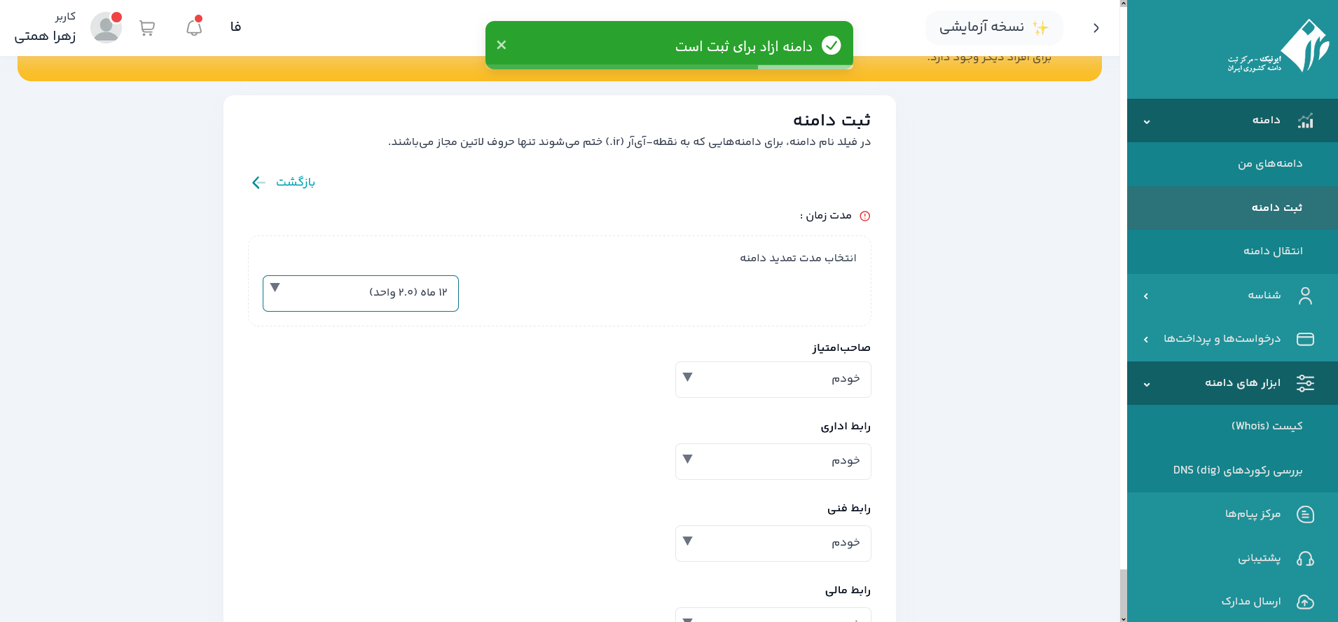 انتقال دامنه به حساب کاربری دیگر یا ثبت دامنههای جدید.
