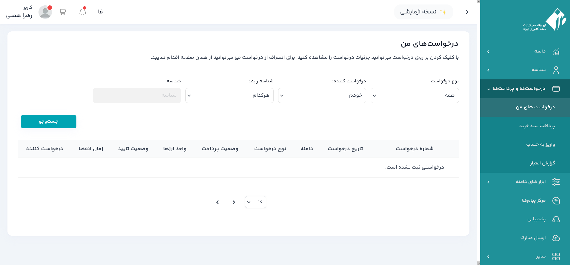 در این قسمت کاربران میتوانند تمامی تراکنشهای مالی خود را مشاهده و مدیریت کنند: