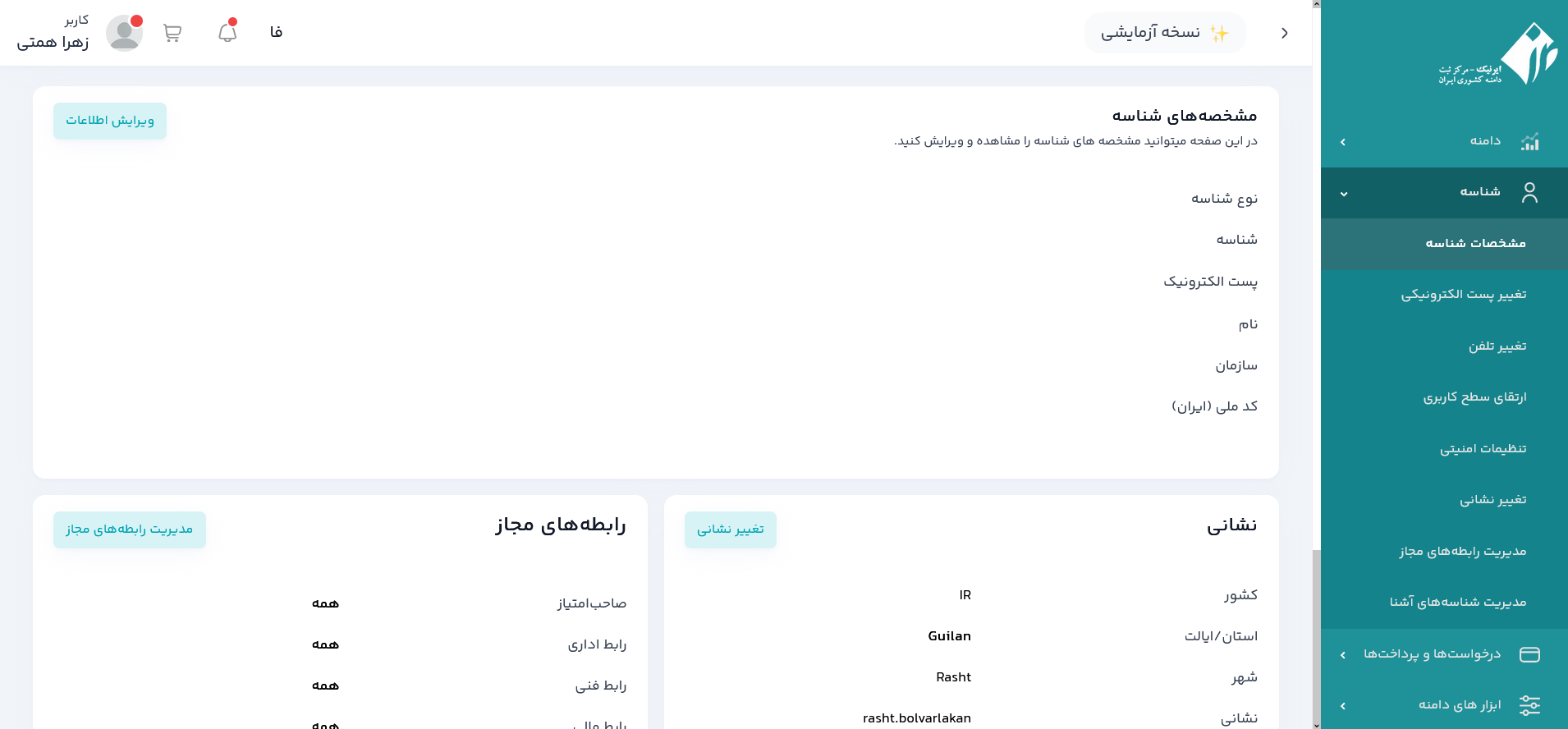 پس از تکمیل ثبتنام، سامانه یک شناسه یکتا به شما اختصاص میدهد که معمولاً به شکل ترکیبی از حروف و اعداد به همراه پسوند irnic است. این شناسه، هویت شما در سامانه نیک محسوب میشود و برای تمامی عملیات مربوط به دامنه مورد استفاده قرار میگیرد.
