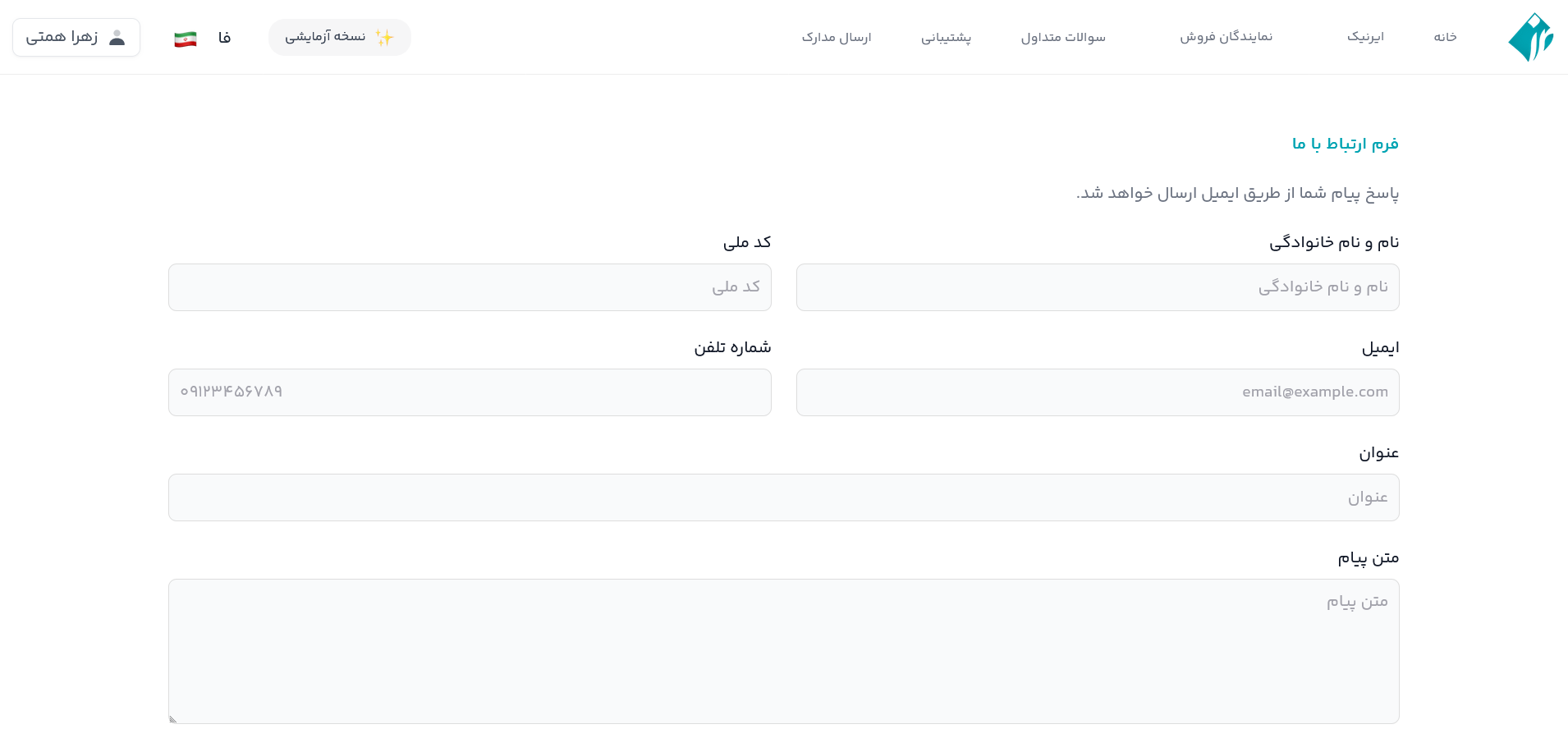 در این بخش کاربران میتوانند درخواستهای خود را به تیم پشتیبانی سایت نیک ارسال کنند: