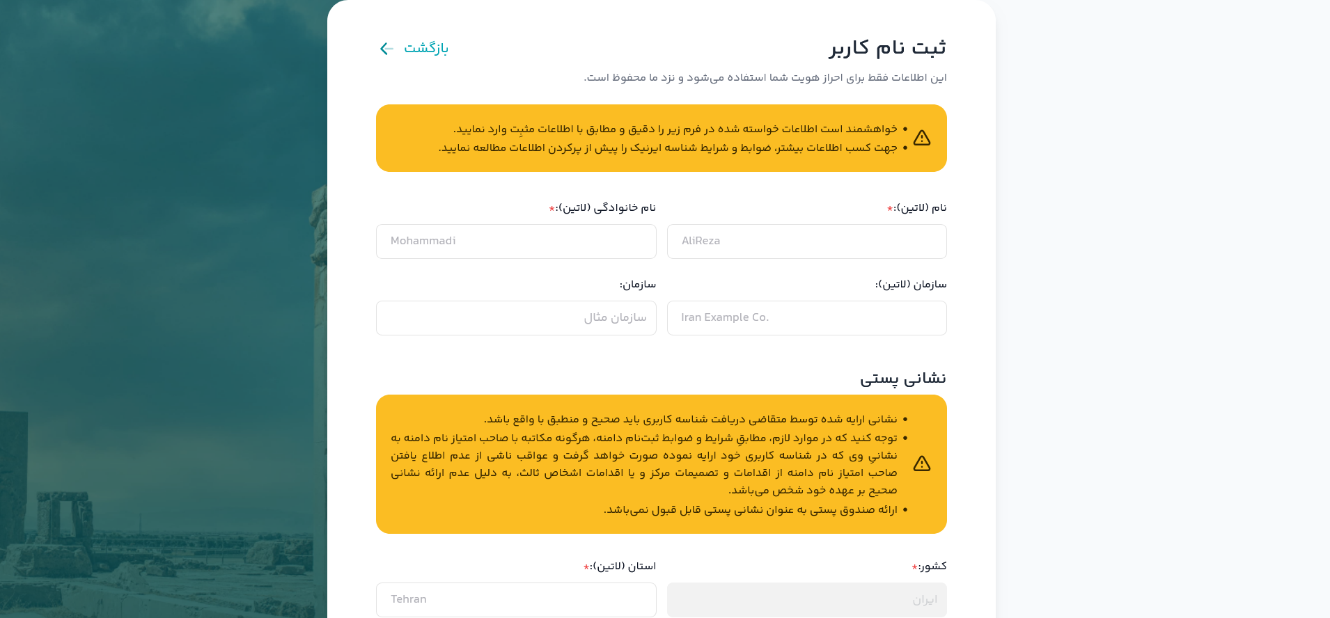 نکته 2: نام و نشانی و سایر اطلاعات بایستی به زبان لاتین درج شود.
